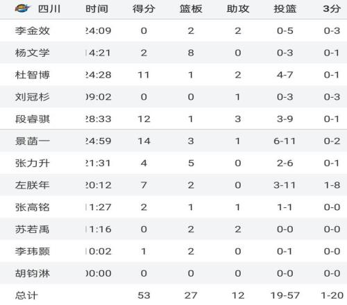 作为球迷,我们可以理解四川男篮的苦处,可以理解球队为什么没有外援,但是至少国内球员应该争气,结果呢?面对实力并不是特别强的南京同曦队,全队40分钟就得到53分,甚至第四节单节就只得到可怜的8分,三分球更是20中1,其中李金效三分3中0,刘冠杉3中0,左朕年8中1,不仅有人防守下进不了,即便是大空位也进不了,球员们都这样的表现,真可以说是最大混子球队了。
