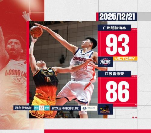 2025-26赛季CBA常规赛第四轮客场战胜江苏广州朗肽海本93:86江苏肯帝亚首节开始,威金顿助攻霍勒迪三分命中,随后...